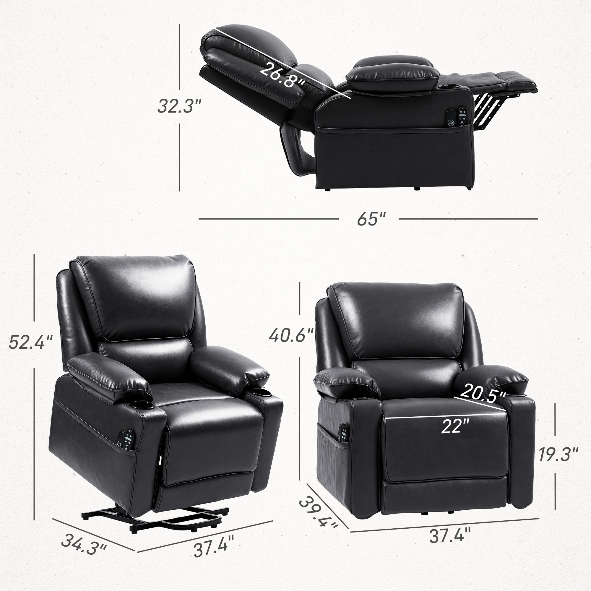 Discover the comfort of the HOMCOM lift recliner chair for adults, your new relaxation haven. Effortlessly rise with a 45° seat lift and unwind with a 135° stepless recline. Experience soothing warmth and a personal massage session with its eight vibrating points and lumbar heating, all enveloped in plush, overstuffed PU leather. Your cozy escape awaits in this electric recliner, designed just for you.