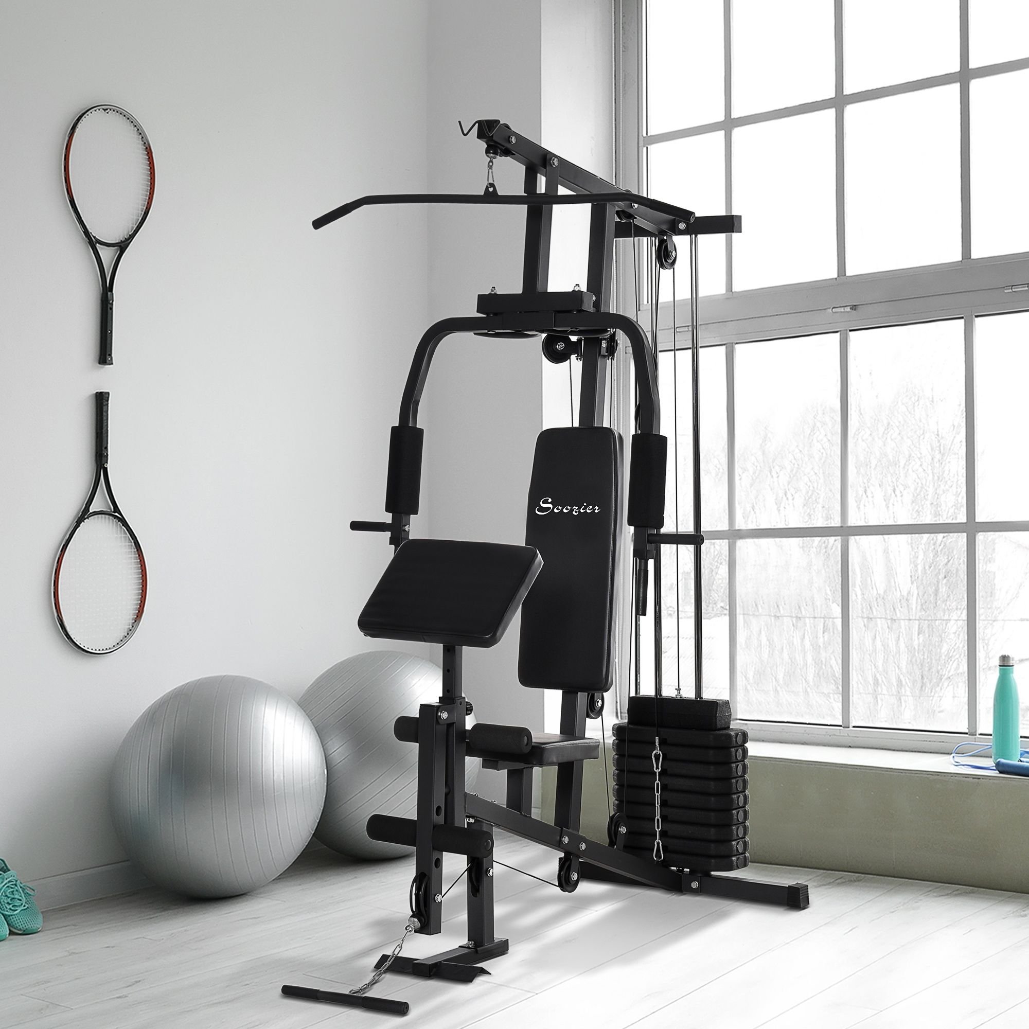 Soozier Home Gym Station Multifunction Fitness Workout Bench Black Comprehensive Exercise Hub 58.25L x 42.5W x 81.5H Soozier Home Gym Station Multifunction Fitness Workout Bench Black Comprehensive Exercise Hub 58.25L x 42.5W x 81.5H Soozier Home Gym Station Multifunction Fitness Workout Bench Black Comprehensive Exercise Hub 58.25L x 42.5W x 81.5H