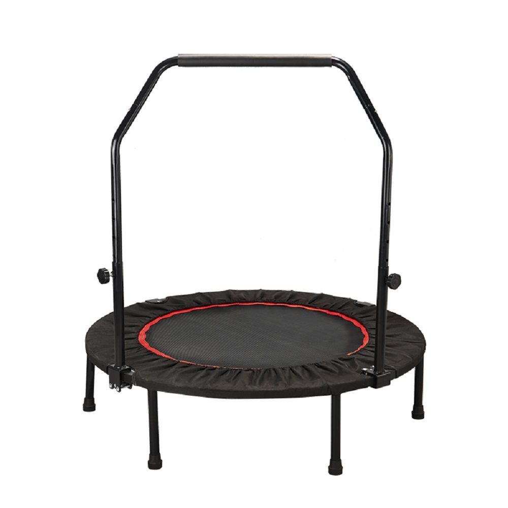 The fitness trampoline is constructed with 32 enhanced springs and 6 durable & firm stainless steel legs, rugged frame and durable rebounding surface bear the maxi weight at 220LBS.