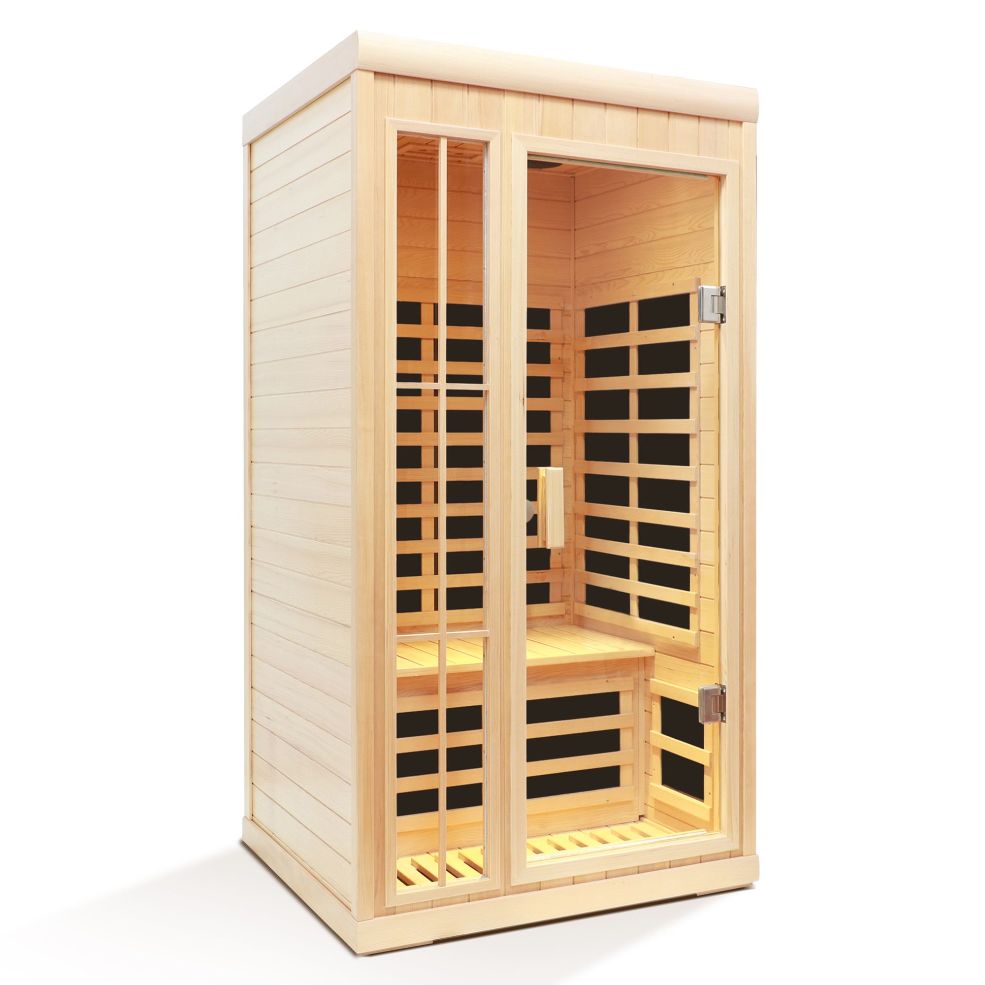 Deluxe version Plus One person Far infrared Hemlock Sauna room with LED colour lightsPower plug: US standard/European standard(15A)Power cable length: 3MRated power supply: 60Hz /120VNumber of heating panels :7PRated power: 1350WThe lowest temperature range: 25°CThe highest temperature range: 65°CFahrenheit and Celsius convert:YesTemperature protection:110 degrees°CControl system: LCD display, touch control,APP controlAudio System: Bluetooth Audio,Bluetooth Equipment Name: SAUNA BTOther configurations:LED reading light, Colorful lights,APP remote controlThe function of timing and temperature: YesVentilator scoop:YesWaterproof:NoMain material: HemlockHeating material: Far infrared heating panelsPackaging method: foam,PP corner guard panel, compartment cardboard,carton and other packagingSeat load: 200kgApplicable height: 150-190cm