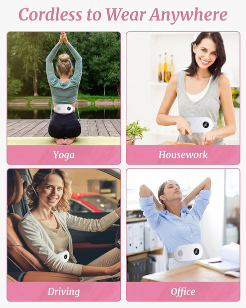 Experience soothing warmth and targeted relief with our Electric Heating Belt. Designed for comfort and convenience, this versatile belt provides adjustable heat settings to alleviate muscle tension and soreness.Key Features:Adjustable Heat Settings: Customize your heat level with multiple settings to suit your comfort needs.Ergonomic Design: Contoured to fit comfortably around your waist, ensuring a secure fit during use.Fast Heating: Enjoy quick relief with rapid heating technology that warms up in seconds.Portable and Lightweight: Perfect for home, office, or on-the-go use, easily fits under clothing.Durable and Easy to Clean: Made from high-quality, washable materials for hassle-free maintenance.Ideal for back pain, cramps, or general relaxation, our Electric Heating Belt is your go-to solution for everyday aches. Embrace comfort and rejuvenate your body with this essential wellness accessory!PRODUCT SPECIFICATIONS:Charging Voltage: 1800mAhUnit Weight: 175g/6.2 ouncesWorking Time: 120minutesCharging Time: 3hours or soProduct Size:20x9x2(cm)**IMPORTANT SAFETY NOTICE: IF YOU HAVE A PACEMAKER OR ANY INTERNALLY EMBEDDED ELECTRIC DEVICE, PR IF YOU EXPERIENCE HEART RHYTHM IRREGULARITIES OR HAVE A KNOWN HEART CONDITION, WE STRONGLY ADVISE AGAINST USING THIS DEVICE. PLEASE CONSULT YOUR DOCTOR BEFORE USE TO ENSURE SAFETY AND EFFECTIVENESS.**